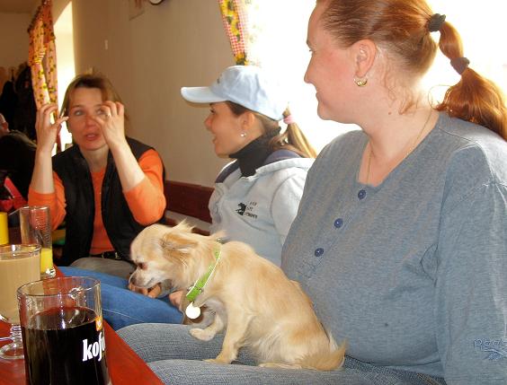 A večer jsme byly odsouzeny k trestu co nejrychleji sníst koláčky a zapít je grogem z odpoledne. Jíťa vyhrála a my s Alčou jsme se museli vykoupit flaškou vína. Cpaly jsme to do sebe ale pěkně ..