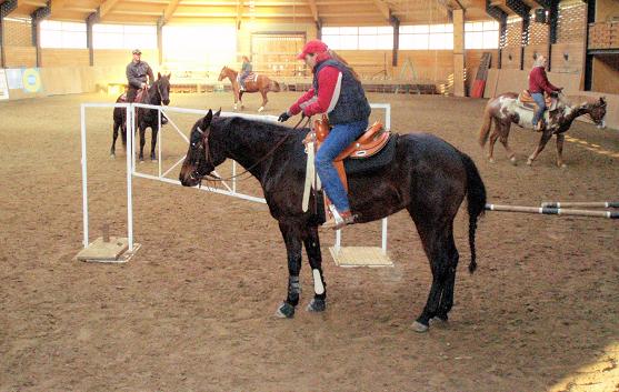Zkoušeli jsme různé úlohy horsemanshipu a trailu.. tady s Gabčou a šikovným Neonkem