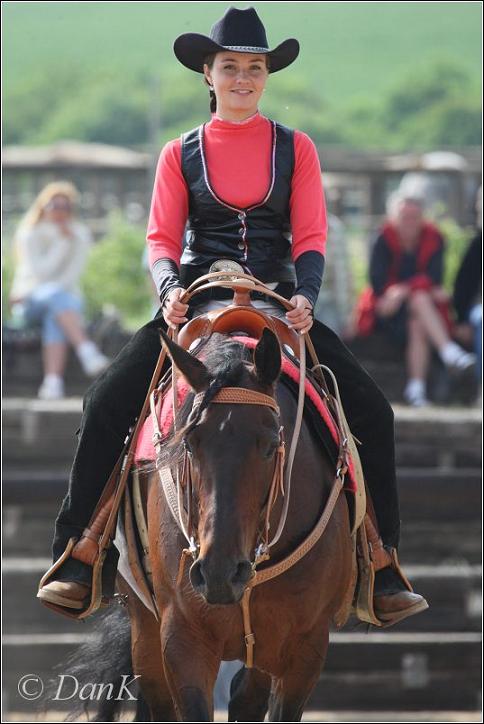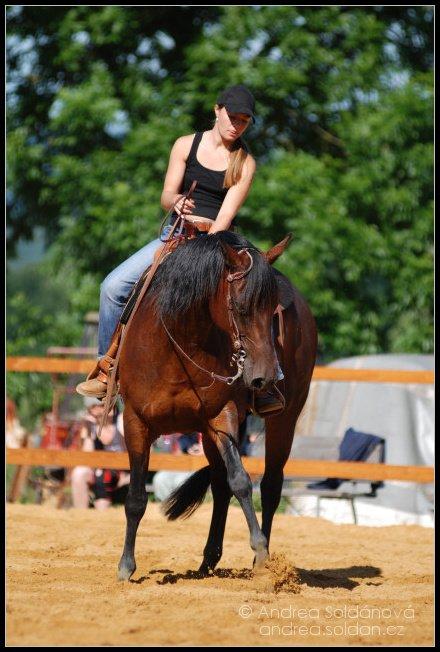 Máme za sebou s Cleou naše první licencované závody typu C a já mám obrovskou radost z výsledků.. lepší jsem si už ani nemohla přát.09.05.2009 se konaly v Židovicích licence a westernové závody D a C. Šly jsme s Cleou poprvé Showmanship at Halter a hned krásné vítězství... srdce mi málem vyskočilo, jak jsem byla nervózní, ale Clea vše vzala na sebe a v pohodě to zvládla. Další Trail, který kobylka taky zvládla bez větších problémů, a pomalu vedla ona mě, než já ji :-) .. takže další první místo a pohárek do sbírky..Třetí jsme jely Pleasure, odkud máme krásné druhé místo. Čtvrtý byl Horsemanship, kde jsme obstály podobně... v těchto disciplínách Clea povolila trochu svému temperamentu, jenže zrovna tady to není moc žádané... a poslední jsme si zajely Barell Race, ve kterých jsem kobče povolila uzdu a přesto, že barely vůbec netrénujeme, Clea se na ně vždy těší a jezdíme je pro zábavu.... třetí pohárek za první místo byl doma :-) Clea Anthony Chex mi ten den udělala obrovskou radost a jsem na ní hrdá..Máme z té akce překrásné fotky od profesionálů kamarádů Koroušových odkaz