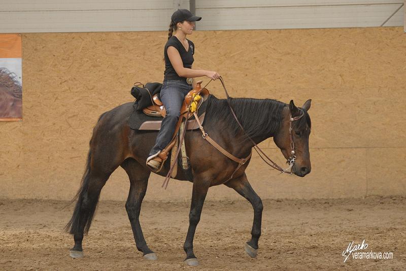27.03.-29.03.2009 jsem trávila s Cleou na Nové Americe u Jaroměře, kde se konala western all around training clinic s Pierrem Ouelletem, který je původem z Kanady, nyní působí v Italii. Pierre byl jedním z rozhodčích na AQHA Show Heart of Europe 2007, je držitelem karet AQHA, APHA, NRHA, FEI. Je autorem seriálu o westernovém ježdění v časopise Jezdectví, velmi úspěšným trenérem jezdců a koní v ,, all around,, disciplínách. Je několikanásobným Evropským šampionem QH, výtězem Amerikany a dalších......Pořadatelem byla pod záštitou AQHA Jitka Kynclová, prezidentka CZQHA. Mimo dobrou organizaci, musím pochválit výborný překlád Jitky a dalších.. Lekce byly zaměřené dle požadavků účastníků na různé disciplíny : w.horsemanship, w.riding, w.pleasure, trail, halter, hunter under saddle, reining. Program byl sestaven zcela na základě požadavků a potřeb účastníků s koňmi. Účast na předchozích klinikách nerozhodovala, ani úroveň jezdeckých dovedností. Jezdců s koňmi bylo dohromady 12.