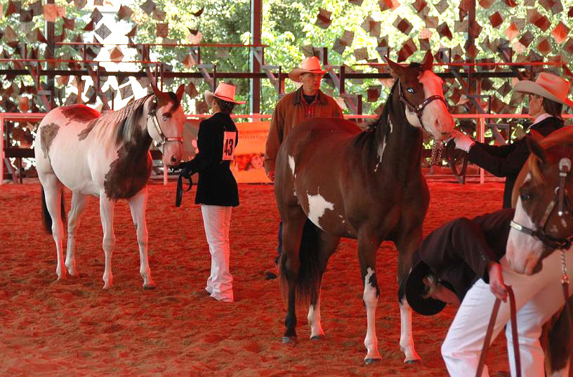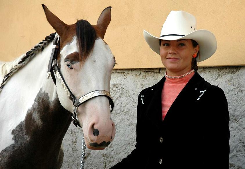 Další zkušenosti máme za sebou a to tentokrát s Lyn na Paint Show 2009 v Koryčanech u Brna.Naše premiéra v disciplínách Halter a Color Class.Lyn asi pětihodinovou jízdu ve vleku zvládla, a na místě byla v pohodě jak v boxíku, tak i při večerní procházce halou, s trochou treninku s ostatními koníky. Noční koupání hadicí a šamponem se jí ale už moc nelíbilo. Ráno mě ale čekalo veliké překvapení ve stáji, protože si Lyn vybrala to nejnevhodnější místo ke spánku... Takže drbání obrovského fleku na boku, i přes deku kterou měla ,opět začalo... tím jsem jí začátek dne asi dost znechutila, protože tady doma si žije bez takovýchto vymožeností a i já jsem přestávala být v klidu, protože docílit její bílé barvy se nějak nedařilo :-( ... Hodně jsem podcenila i přípravu , kvůli akcím a trenování s Cleou a také díky nepříjemným okolnostem jsem s Lyn nemohla tak často pracovat, jak bych chtěla... takže se to na show podepsalo :-) Při hodnocení Halteru třídy musí koník stát v klidu nožky rovně v zákrytu, Tak nám to vydrželo jen chvíli a když po 3. dvouleté barevné klisně rozhodčí přišel k nám, postoj se rozpadl a tím všechno špatně.. Takže 4.místo ze 4 kobylek :-) V Color Class už se hodnotila jen barva Paint koníčků a tam jsme měly hezké 6.místo z 15 všech. Pro nás dvě to byla veliká zkušenost do budoucna. Možnost vidění tolik krásných barevných koní pohromadě.. také setkání se známými a kamarády, kteří barevné koníky chovají... to byla letošní Paint Show.